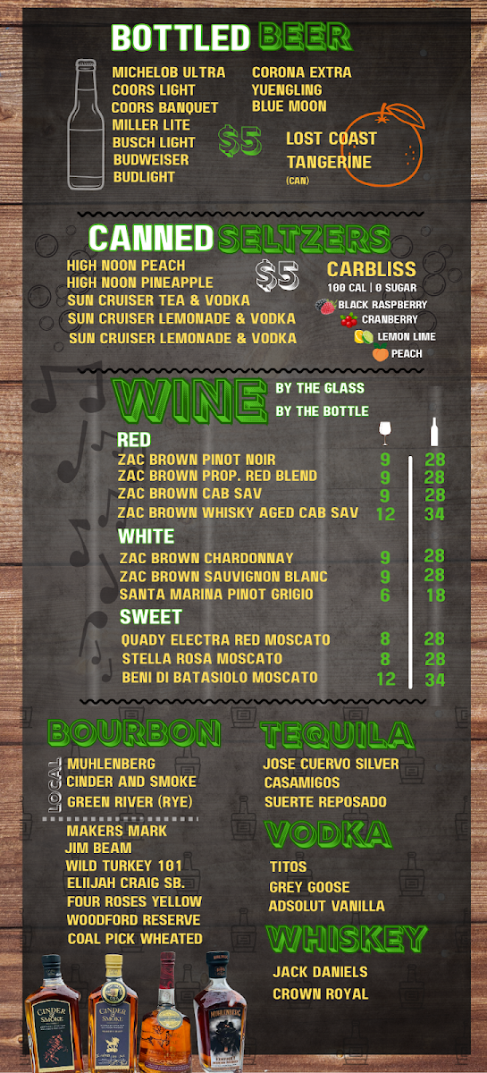 You'll find comforting staples like pulled pork, smoked brisket sandwiches, and a rack of ribs alongside crispy chicken wings and flavorful sides like coleslaw, baked beans, and potato salad. The menu also includes crowd-pleasing dishes such as nachos and cheese, chicken tenders with fries, and inventive choices like pulled pork tacos and a smoked turkey sandwich.
